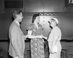 Mrs. John F. Lyons (right) and Brooks Morris (left) greet Ramona, blues singer for Paul Whiteman at Fort Worth's Frontier Centennial, 07/10/1936