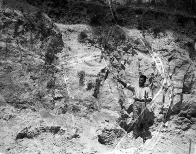 Gold found on a farm near Springtown, Texas, on property of Mr. and Mrs. Brice E. Griggs; Fred Jacobs, Native American miner who is helping the Griggs, 08/10/1936