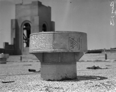 Construction of a cattle barn for the Fort Worth Frontier Centennial livestock show in the Northside Stock Yards area of Fort Worth (today's Billy Bob's), 08/13/1936