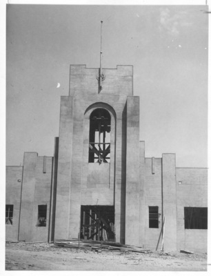Construction of cattle barn and entrance tower in northside stockyards area for Fort Worth Frontier Centennial, for livestock show to be held October 3-11, 1936; 08/17/1936