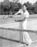Howard Walsh, tennis player. He can be seen hitting a tennis ball with his racket.