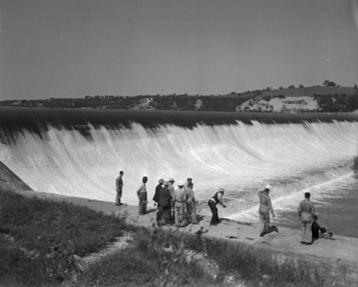 People standing on bank overlooking Lake Worth Dam, 10/10/1936
