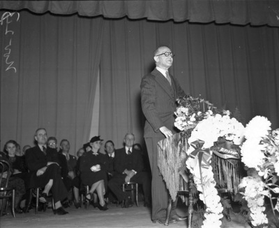 Sidney Samuels, principal speaker at Riverside High School dedication, 11/23/1936