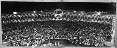 Photograph of a photograph of crowd seated and dancing at Casa Manana at the Fort Worth Frontier Centennial, 12/05/1936
