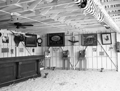Shady Oak Farm decorated for a visit of Winthrop and Nelson Aldrich Rockefeller. This photograph shows the interior of the bar at Shady Oak Farm.