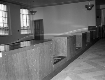 Interior of Fort Worth Municipal Airport; check-in counter, 01/25/1937