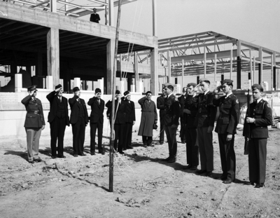 Flag raising ceremony preceding laying of cornerstone at new U.S. Narcotic Farm near Forest Hill, Fort Worth.