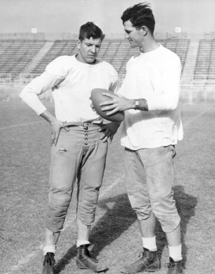 Texas Christian University (T. C. U.) football players Sammy Baugh and Jimmy Pratt, 02/16/1937