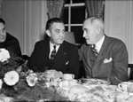 Harry Hines (left), member of Texas Railroad Commission, with Charles H. Newell (Austin), manager-secretary of Texas Highway Branch of the Associated General Contractors of America, at Hotel Texas banquet, 03/06/1937