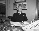 J. Alvin Gardner, president of Texas League baseball, at his desk, 03/26/1937