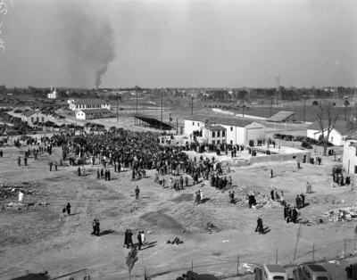 Crowd gathers for memorial services for victims of the New London School explosion, 03/28/1937