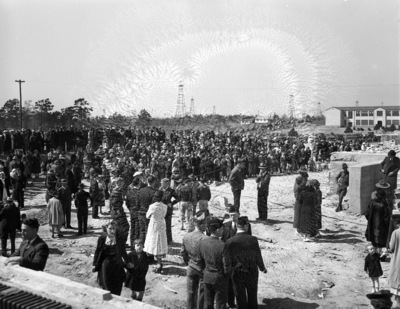 Crowd gathers for memorial services for casualties of the New London School explosion, 03/28/1937