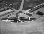Exterior of the new administration building at Fort Worth's Municipal Airport (Meacham Field), with American Airlines hangar in background, 04/02/1937