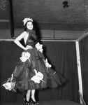 Tilda Goetze in costume gown covered with flowers to be worn in Casa Manana revue at Frontier Fiesta