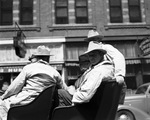 Fort Worth visit by Postmaster General James A. Farley; Elliot Roosevelt, James Farley, Amon Carter and others in 1902 Cadillac, 05/30/1937