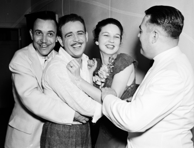 At Fort Worth's Frontier Fiesta Casa Manana; former Casa Manana Revue (1936) sweetheart Faye Cotton with some of the Peppers.