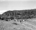 Goats on dirt road near Fort Davis and McDonald Observatory, 11/1937