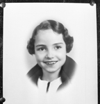 Copy of a half-length portrait of a young girl. She has short curly hair and is smiling.