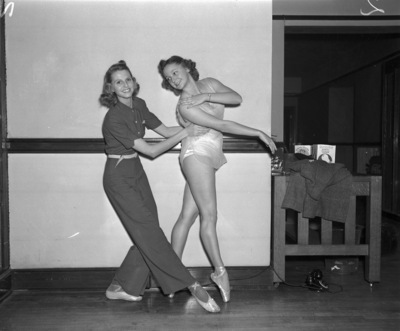 Alexander Oumansky Ballerinas Dorothy Adams (Fort Worth) and Madeline Hopkins (Dallas) will appear with Fort Worth Symphony Orchestra in Municipal Auditorium, 12/1937