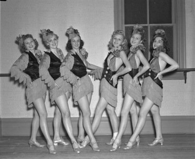 Alexander Oumansky dancers in Goodfellow Frolic; left to right, Margie Ward, Wilby Lingo, Carolyn Waynock, Georgia Padgett, Salome Robertson, Mary Dorothy Hill, 12/1937