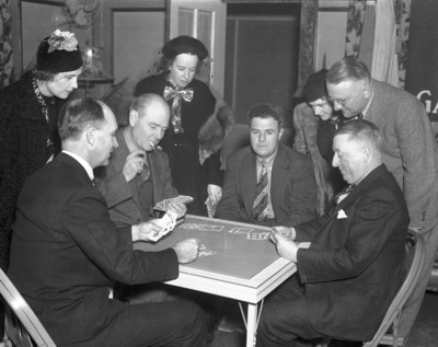 Amon Carter's New Year's Party at Shady Oak Farm; men playing cards, 01/01/1938