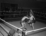 Golden Gloves action at Panther City Arena, Y.M.C.A.; Hal Steen (left) and Willie Porter fight in the welter-weight division, 01/09/1938