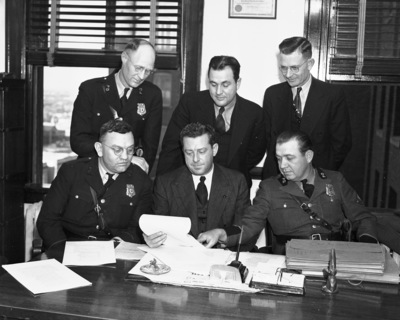 Fort Worth Police Department pension committee; standing left to right, H. A. McClanahan, Ed K. Lee, Howard Grant; sitting, left to right, Ray Newton, James M. Floyd, Roy Hilts, 02/03/1938