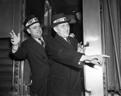 Fort Worth Southwestern Exposition and Fat Stock Show Roundup Club tour of Texas Panhandle; George W. Scaling (left) and E.H. Speer, 02/08/1938