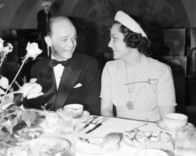 Harry M. Park and fiancee Hattie Bess Wallace; Park presented with the United States Junior Chamber of Commerce golden key as "Fort Worth's Outstanding Young Business Man of 1937," 02/09/1938