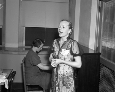 Polytechnic High School Ex-Students' Association banquet; Lucille Gordon Roberts, ex-student who sang at the banquet, 02/10/1938
