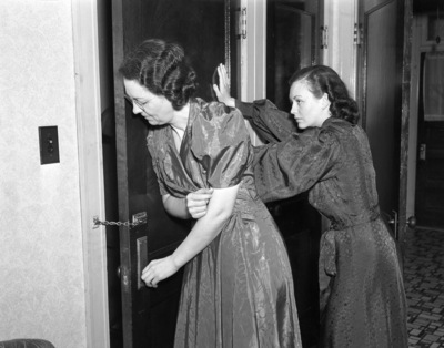 Mrs. Maye Parton (left) and daughter Florene Parton thwarted a robber at their 1505 West 7th Street apartment, 02/11/1938