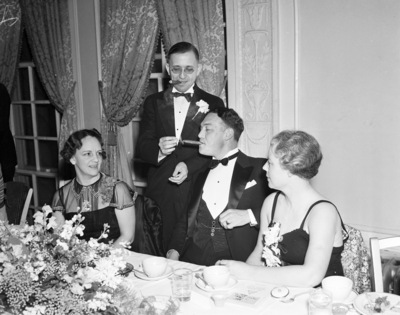 Tuxedos; Windows; Draperies; Banquets; Evening gowns; Cigars; Bouquets; Hotel Texas (Fort Worth, Tex.); Fort Worth Advertising Club; Morgan DeWitt; Morgan DeWitt (Mrs.); Dundas, Robert; Dundas, Robert (Mrs.)