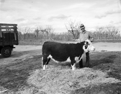 Albany Beef Show and Sale; registered Hereford heifer Gaynor Domino handled by Pete Self, 02/14/1938