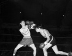 State competition Golden Gloves in Fort Worth, Matt Martinez of Austin (right) fights Curly Ferguson of Brownwood; Martinez won a close decision, 02/17/1938