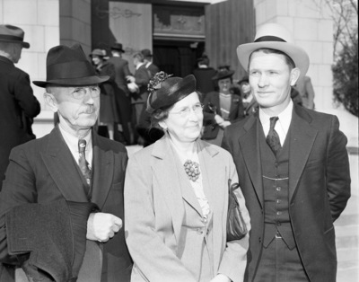 Central Texas Methodist Conference; from left, R.V. Reavis of Malone; Mrs. C.V. Varner of Milford; and O.L. Damron, Milford, 02/23/1938