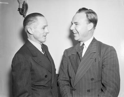 O.L. Blanton, Sea Scout Commissioner for Fort Worth district, left, and Jeff D. McDonald, field executive for Denton County; Sea Scout meeting at Glen Garden Country Club, 02/24/1938
