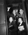 Four educators leave T&P Train Station for American Association of School Administrators; from top left, H.S. Fatheree and Byron England; on bottom from left are Cornelia Hood and Gladys Miller, 02/24/1938