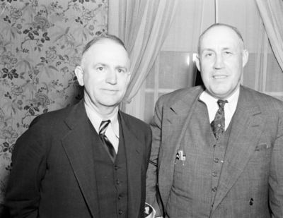 John Stribling Auction and Sweetwater Hereford Auction; from left, Dr. A.J. Wimberle, registered Hereford breeder in Sweetwater, and A.D. Scott of Culpepper, VA, 03/03/1938