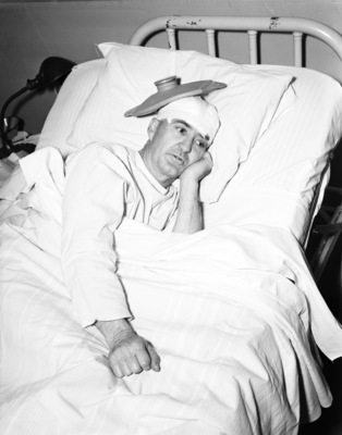 George Beland, Fort Worth, Texas liquor store operator, after being severely beaten by a robber in the 5800 block of Camp Bowie Boulevard. He was hospitalized at the Baptist Hospital of Fort Worth.