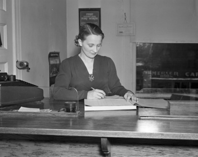 Justine Koci victim of robbery by armed man while working at the Crow Loan Co., 204 Moore Bldg., 03/07/1938