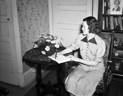 Grace Ross, Fort Worth poet, in her home at 817 Lamar Street, 04/13/1938