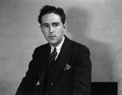 Tom Hudson of Radio KGKO at the top of the Medical Arts building in Fort Worth, 04/20/1938
