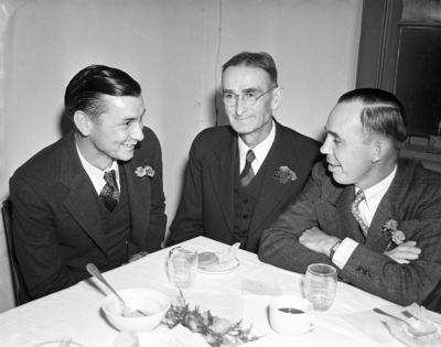 Handley Masonic Temple celebrated completion of new water system; from left, Durwayne Roper, Reverend A.E. Miller, and Dr. W.C. Foster, 04/21/1938