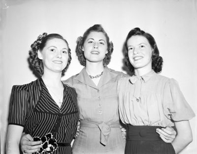 Handley Masonic Temple celebrated completion of new water system; musical program included, from left, Peggy lewis, Arlyne Terry, and Margaret Moore from North Texas Agricultural College, 04/21/1938