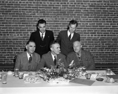 Luncheon given by Fort Worth Boys Club Council for the Fort Worth General Ministers Association at the Boys Club house, 2000 Ellis Ave.; seated from left, W.Y. Pond, Rev. Harry L. Spencer, I.E. Reynolds; back, C.C. Makarwich, and C.G. Fairchild.