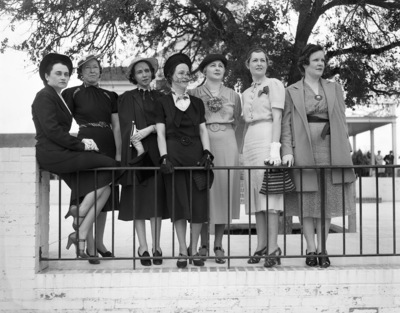 New officers of the Army and Navy Club at Colonial Golf Club; from left, Mmes. Harry Knight, J. V. Russell, C. W. Kelly, A. V. Endress, E. P. Seltzer, William Sutton, S. B. Hargis, 04/25/1938.