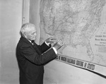 M. E. Sebree, 80 years old of Olney, Illinois, first Rock Island trainmaster in Fort Worth explains how road was built into the city, 06/1938