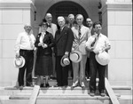 Inspectors of U.S. Public Health Service Hospital near Forest Hill; from left, front, Charles A. Sloan, Mrs. Walter Treadway, Dr. Treadway, Wyatt C. Heddrick, and Frank Miller; back, Amon Carter, Dr. Webb Walker, and Dr. Hodges McKnight, 06/02/1938