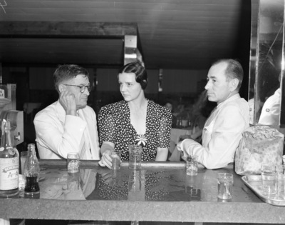 New Lake Worth nightclub "Show Boat" party given by Mr. and Mrs. C. A. Lupton. Attendees from left, Dr. Henry B. Trigg, Mrs. Wyatt C. Hedrick, and R. K. Hanger, 06/30/1938.