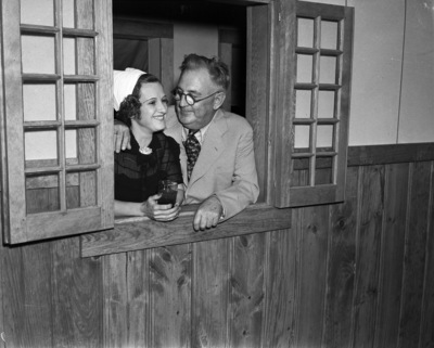 The new Show Boat nightclub, Northwest Hwy. at Lake Worth; looking through window of the boat's stateroom deck are C. A. Lupton and Mrs. Amon G. Carter, 06/30/1938.